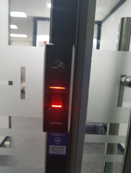지문인식기를 통한 유리문 출입통제 및 근태관리