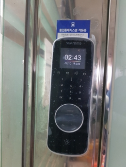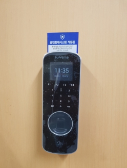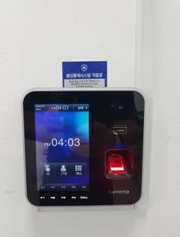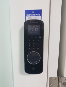화재신호 수신시 출입문 열림단말기.설치개소1개소일자2017-08-16장소서울시 서초구목적지문인식기를 통한 출입통제 및 근태관리