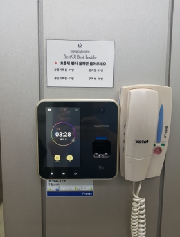 비디오폰을 통한 방문자 확인 및 문 열림 기능단말기BioEntryPlus설치개소1개소일자2017-08-14장소서울시 영등포구목적지문인식기를 통한 출입통제 및 근태관리
