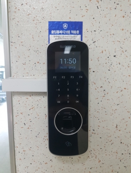 지문인식기를 통한 출입통제 및 근태관리단말기BioEntryPlus설치개소1개소일자2017-06-30장소서울시 강남구목적지문인식기를 통한 출입통제 및 근태관리 -