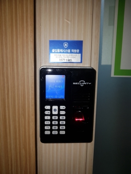 지문인식기를 통한 출입통제단말기HU-2000F설치개소1개소일자2017-07-27장소서울시 중구목적지문인식기를 통한 출입통제 -