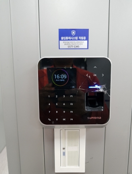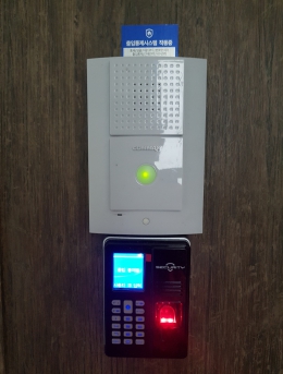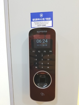 지문인식기를 통한 출입통제단말기SMART-FC5설치개소1개소일자2017-05-26장소서울시 송파구목적지문인식기를 통한 출입통제 -