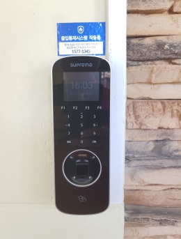 지문인식기를 통한 출입통제단말기HU-2000F설치개소1개소일자2017-05-24장소서울시 마포구목적지문인식기를 통한 출입통제 -