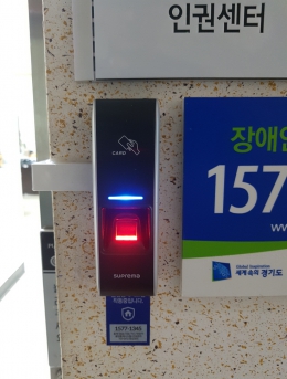 지문인식기를 통한 출입통제단말기.설치개소1개소일자2017-05-29장소서울시 강남구목적지문인식기를 통한 출입통제 -