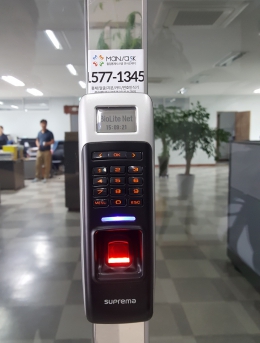 지문인식기를 통한 출입통제단말기FingkeyAccess설치개소1개소일자2016-09-06장소서울시 강남구목적지문인식기를 통한 출입통제 -