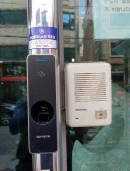 인터폰을 통한 방문자 확인단말기BioStation설치개소1개소일자2016-09-03장소서울 영등포구목적지문인식기를 통한 출입통제 및 근태관리