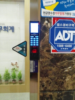 인터폰을 통한 방문자 확인단말기BioEntryPlus설치개소1개소일자2016-06-29장소서울시 구로구목적지문인식기를 통한 출입통제 및 근태관리