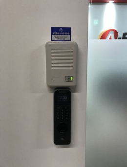 지문인식기를 통한 출입통제 및 근태관리 / 인터폰을 통한 방문자 확인 및 문 열림 기능