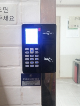 인터폰을 통한 방문자 확인단말기X-Pass설치개소1개소일자2016-08-26장소서울특별시 서초구목적카드인식기를 통한 출입통제 및 근태관리