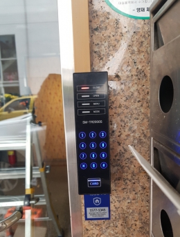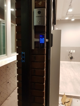 강화유리문 (데드볼트 시공) / 강화유리문 상단 프레임에 매립하여 설치단말기ACE-93TK설치개소2개소일자2018-02-06장소인천시 남구목적강화유리문 (데드볼트 시공) / 강화유리문 상단 프레임에 매립하여 설치 -