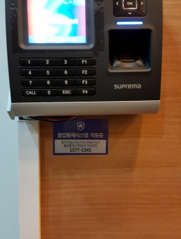지문인식기를 통한 출입통제단말기HU-2000F설치개소1개소일자2016-05-07장소서울시 성동구목적지문인식기를 통한 출입통제 -