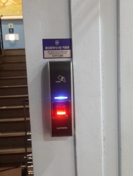 카드인식기를 통한 출입통제단말기SM-TR1000설치개소1개소일자2016-04-06장소서울특별시 송파구목적카드인식기를 통한 출입통제 -