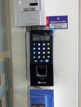 비디오폰을 통한 방문자 확인단말기HU-2000F설치개소1개소일자2016-04-26장소서울특별시 송파구목적지문인식기를 통한 출입통제