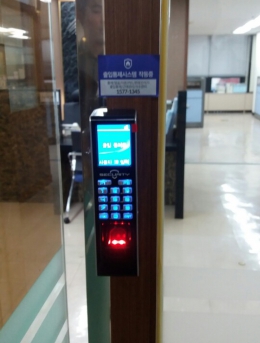 지문인식기를 통한 출입통제단말기HU-2000F설치개소1개소일자2016-04-09장소서울특별시 중구목적지문인식기를 통한 출입통제 -